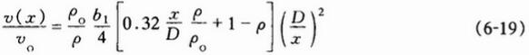 噴射速度隨著軸線距離增大而減小,直到軸線上的某一點噴射速度等于風速為止。該點稱為臨界點,臨界點以后的氣體運動不再符合噴射規律。沿噴射軸線的速度分布由下式得出: