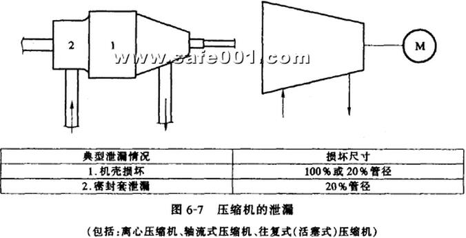 圖6—1~圖6—10提供了各類設(shè)備的典型損壞情況及裂口尺寸,可供后果分析時(shí)參考。這里所列出的損壞典型,僅代表事故后果分析的基本的典型損壞。評價(jià)人員還可以增加其他一些損壞的形式和尺寸,例如閥的泄漏、開啟式貯罐滿溢等人為失誤事故,也可以作為某些設(shè)備的一種損壞形式。