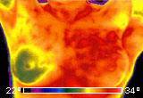 熱像檢查顯示出異常溫差,這可能表示左側乳房患有乳腺癌。