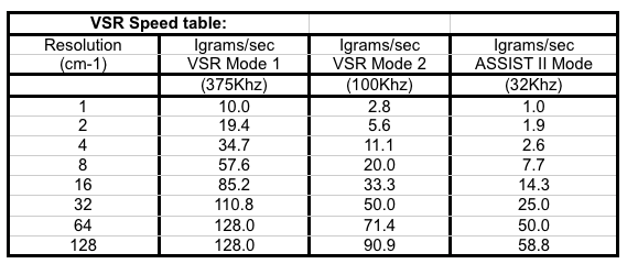 VSR Speed table: